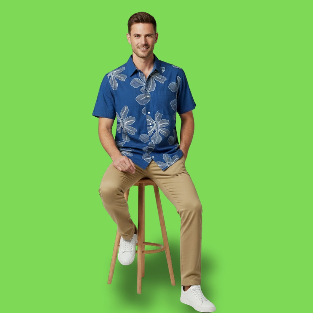 Blue Color white Floral Dori Embroidery Shirt